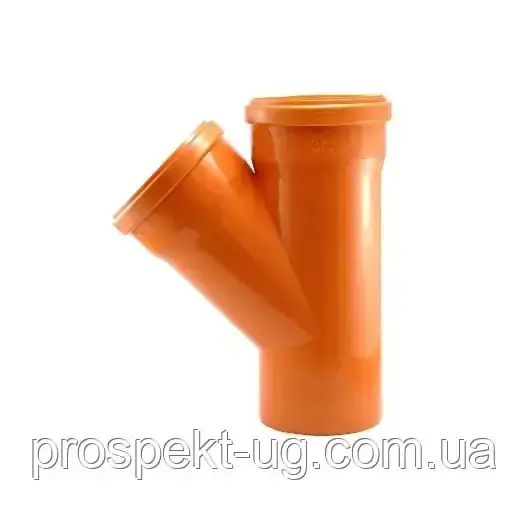 Діаметр підключення (основний/бічний): 110 мм / 110 мм. Кут відведення: 45 градусів. Тип: трійник рівнопрохідний Y-подібний. Застосування: для зовнішніх каналізаційних мереж. Робоче середовище: господарсько-побутові та зливові стічні води. Максимальна робоча температура: до +60°C. Клас кільцевої жорсткості: SN4 (забезпечує стійкість до стандартних навантажень від ґрунту при правильному укладанні). Колір: Помаранчево-коричневий (RAL 8023), що є стандартом для ідентифікації труб зовнішньої каналізації.